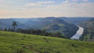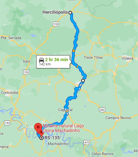 Segue passando pelo acesso secundário de Piratuba, para finalmente chegar à Usina Hidrelétrica de Machadinho e terminar na divisa com o RS.